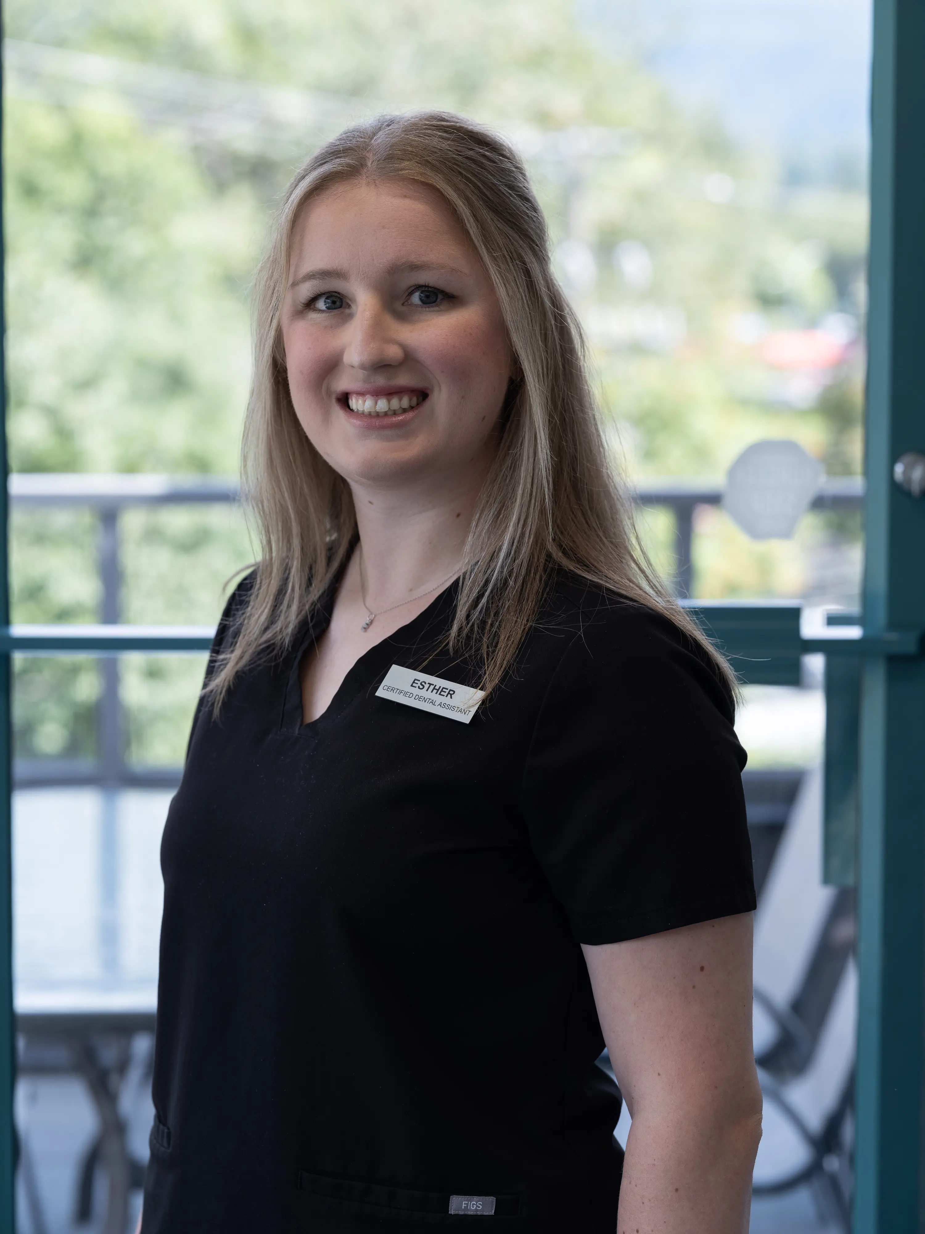 Originally from Grande Prairie, Alberta, Esther moved to Langley with her family in 2012. She graduated from the Certified Dental Assistant Program at Vancouver Community College in 2015 and joined our team in early 2016. Since then, she has grown into a highly skilled, reliable, and intuitive member of our clinical team.